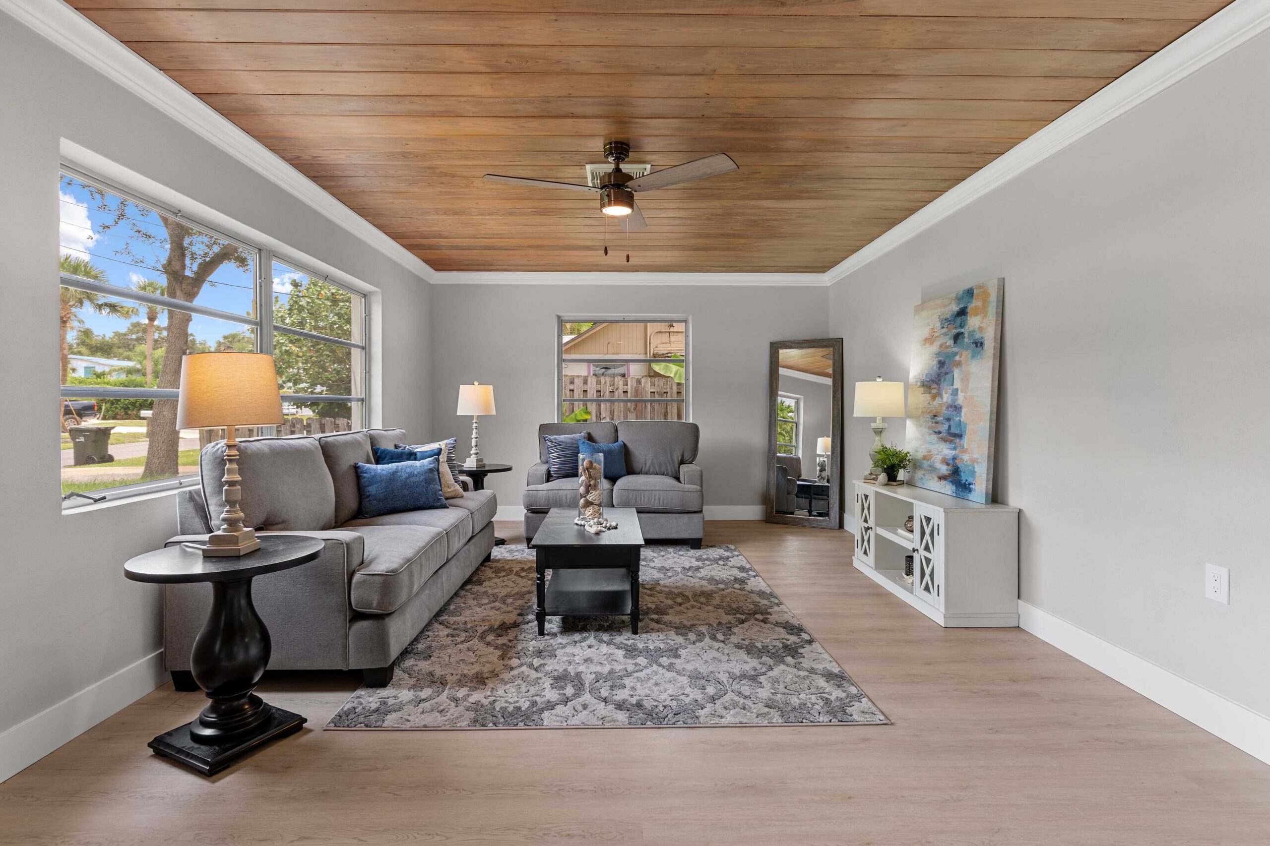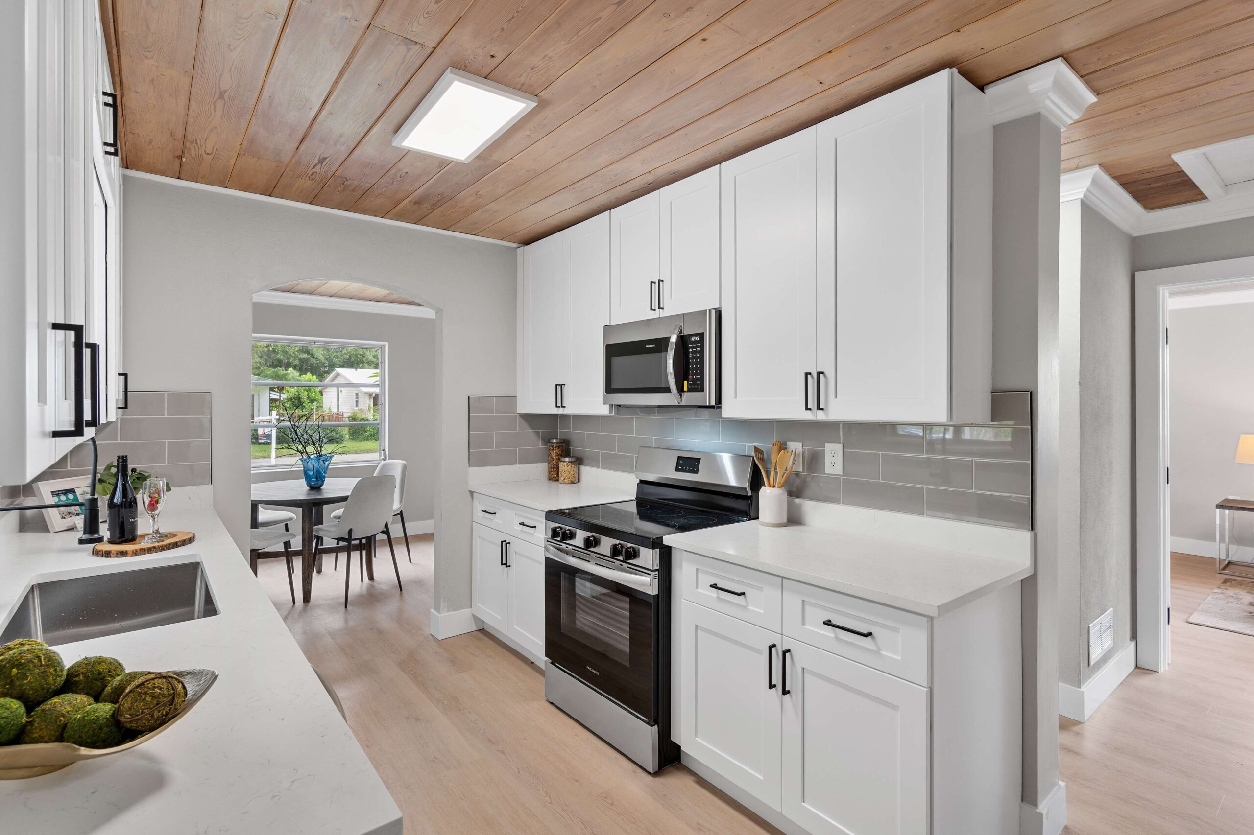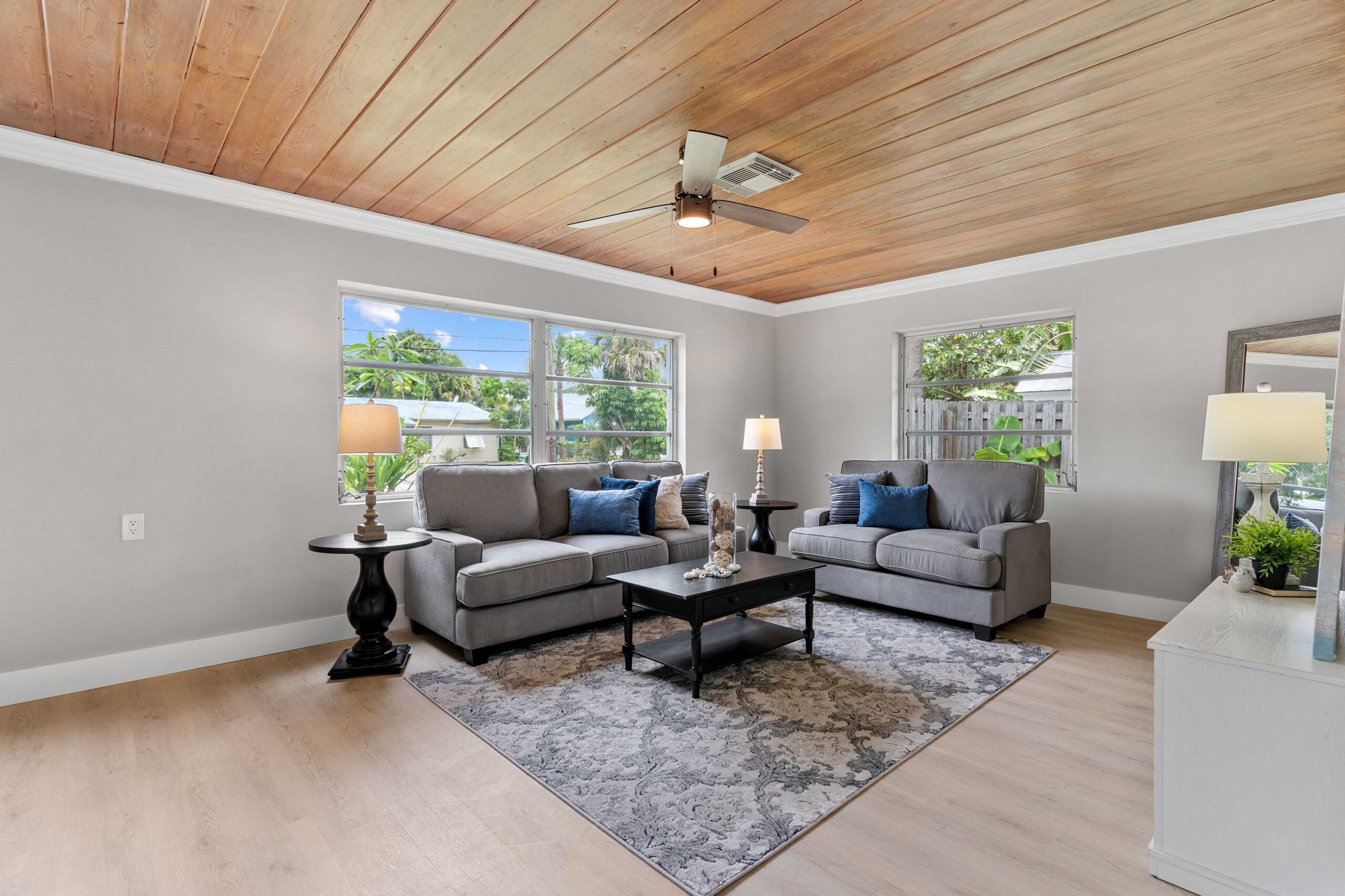 Welcome to this charming renovated two bedroom, one bathroom home situated in a prime location in a vibrant community. This home is just moments away from downtown Stuart’s boutique shops, cafes, and waterfront dining options. Whether you are seeking a charming residence or a vacation rental investment, this property presents a compelling option. There are no HOA restrictions, plenty of parking, and a 2019 Metal roof. The hardwood ceilings with crown molding are complimented by brand new white shaker cabinets and quartz countertops which give a fresh modern ambiance. The outdoor bar and shower in a pristine garden setting appeal to the nature enthusiast.